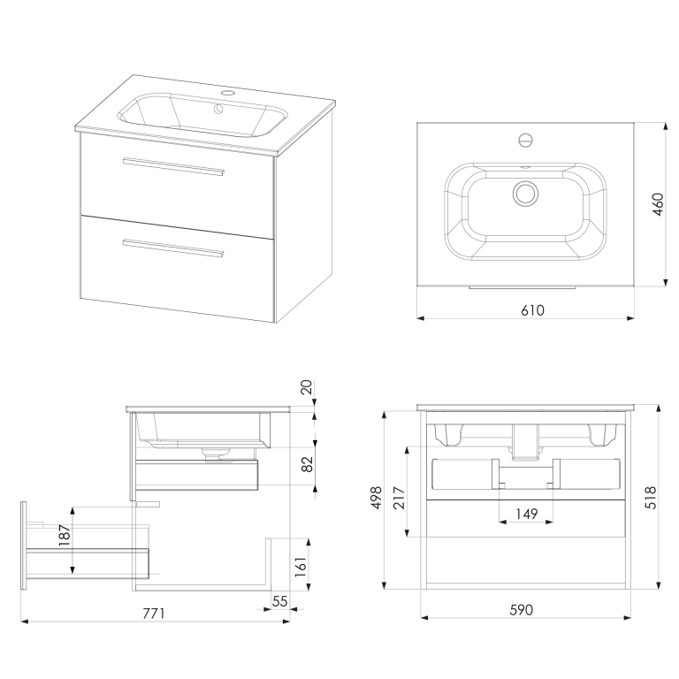 - Made-to-fit Orilla ceramic basin with a single tap hole.
