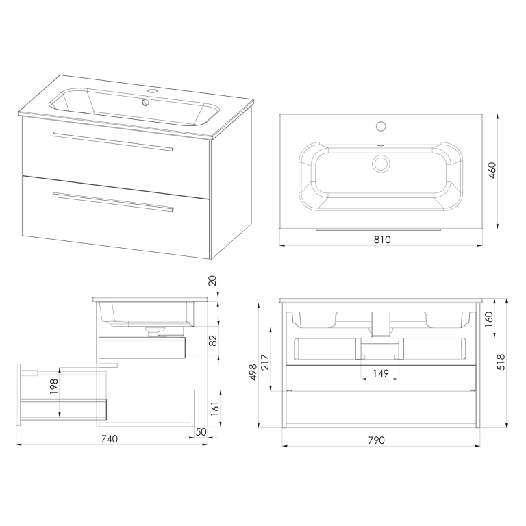 Berwick is a versatile and stylish bathroom vanity that seamlessly blends aesthetics with functionality. Its design is characterised by sleek angled edges, a modern slim bar handle and a made-to-fit, white ceramic basin. The two large, smooth glide drawers, provide practical and convenient storage for towels, toiletries, and other bathroom essentials.
