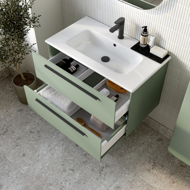 - Berwick 800mm two-drawer wall-hung vanity unit.