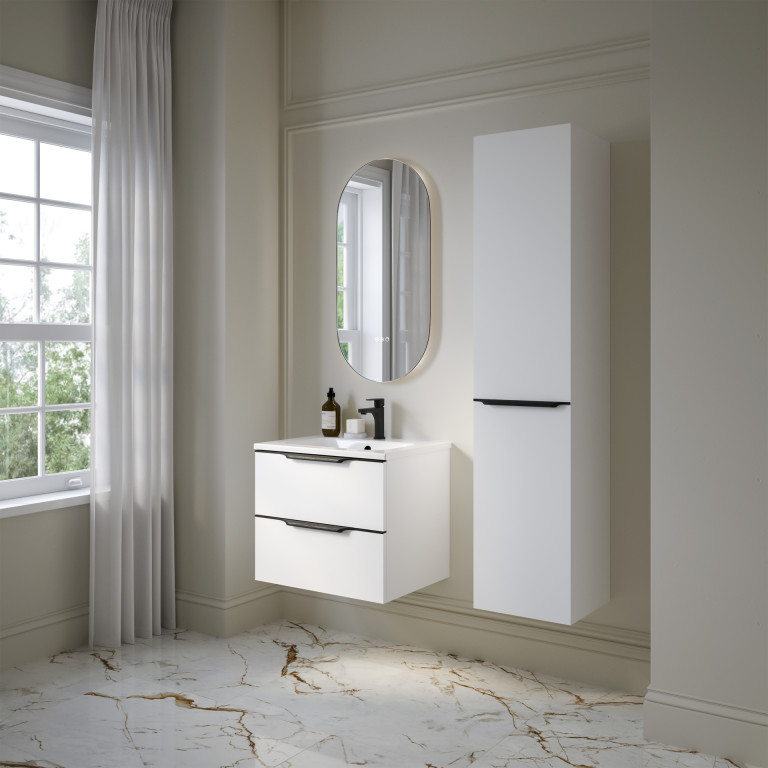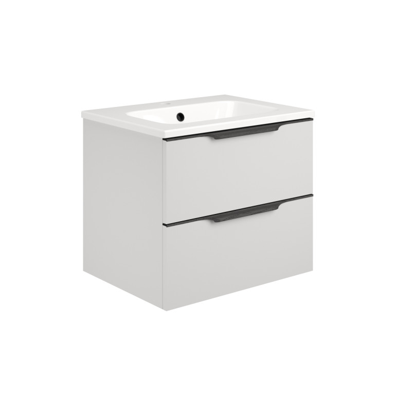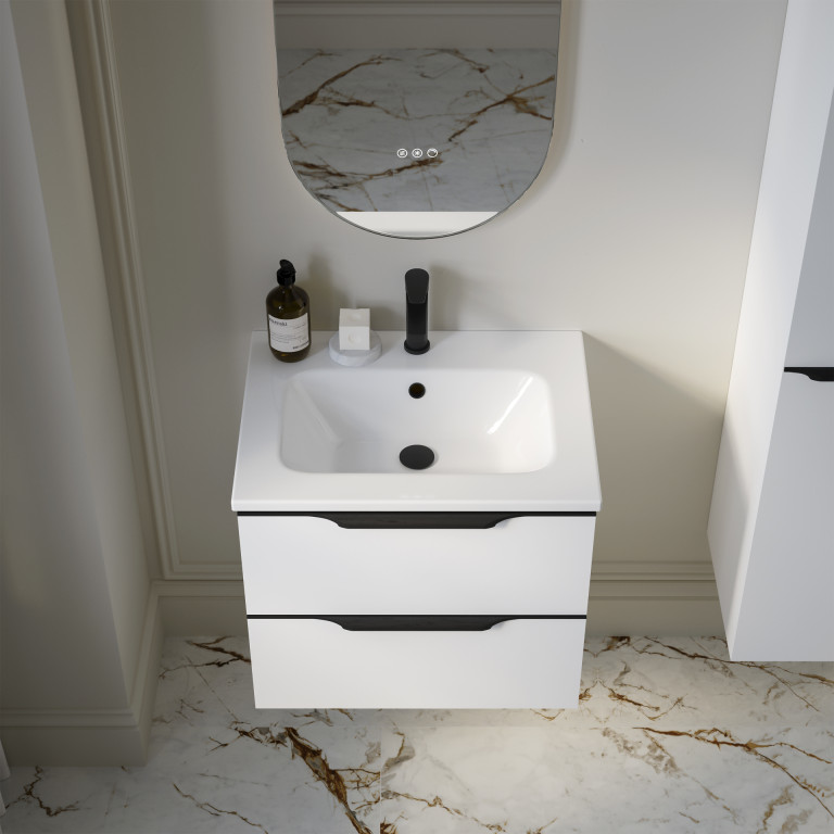 Crofton 2 Drawer Vanity 550mm with Ceramic Basin and Matt Black Handles - White Matt