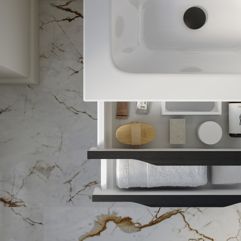 Ottawa boasts a chic and modern design characterised by its bold square edges, whisper-soft closing drawers, and a full-width oak handle. The storage possibilities of Ottawa are well-considered and practical, with the drawers providing effective options to ensure your bathroom stays organised and clutter-free.