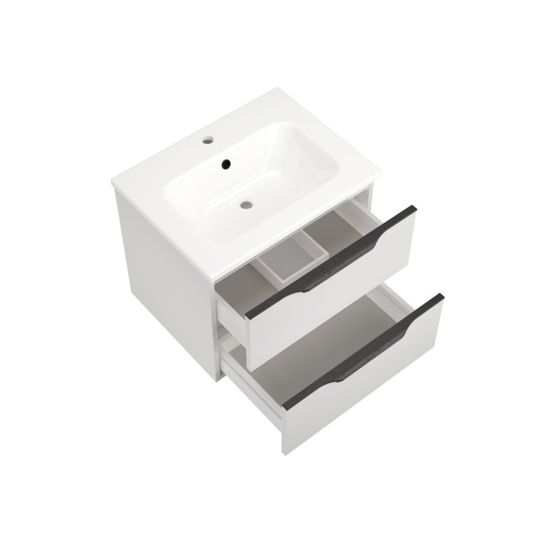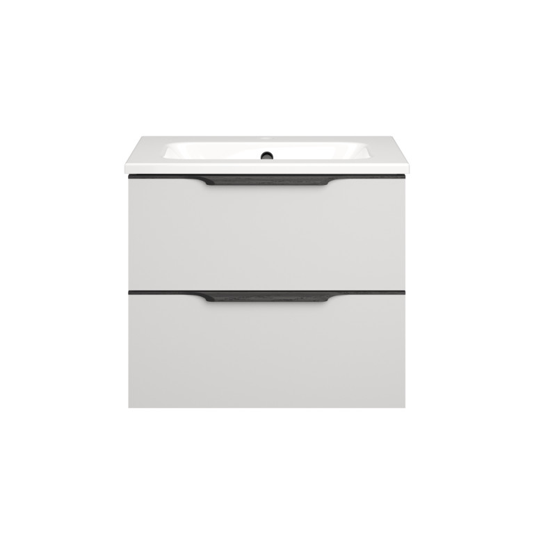 Ottawa 2 Drawer Vanity 600mm with Ceramic Basin and Natural Oak Handles - Orchid White