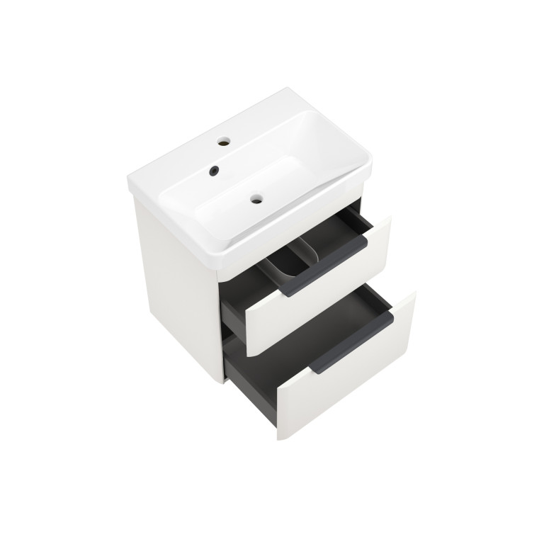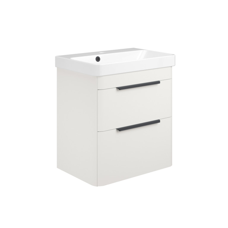 Ottawa 2 Drawer Vanity 600mm with Ceramic Basin and Black Oak Handles - Orchid White