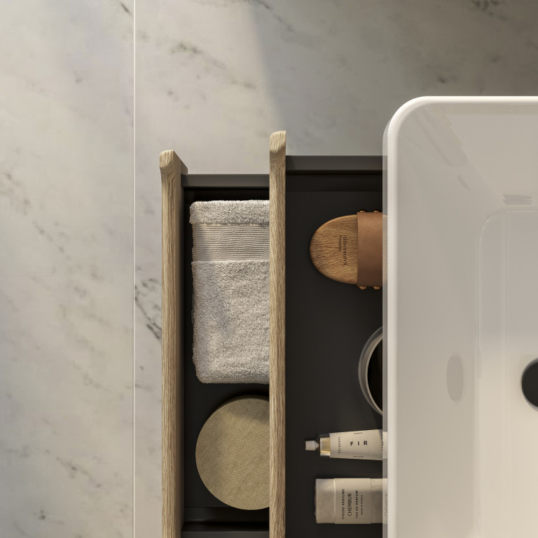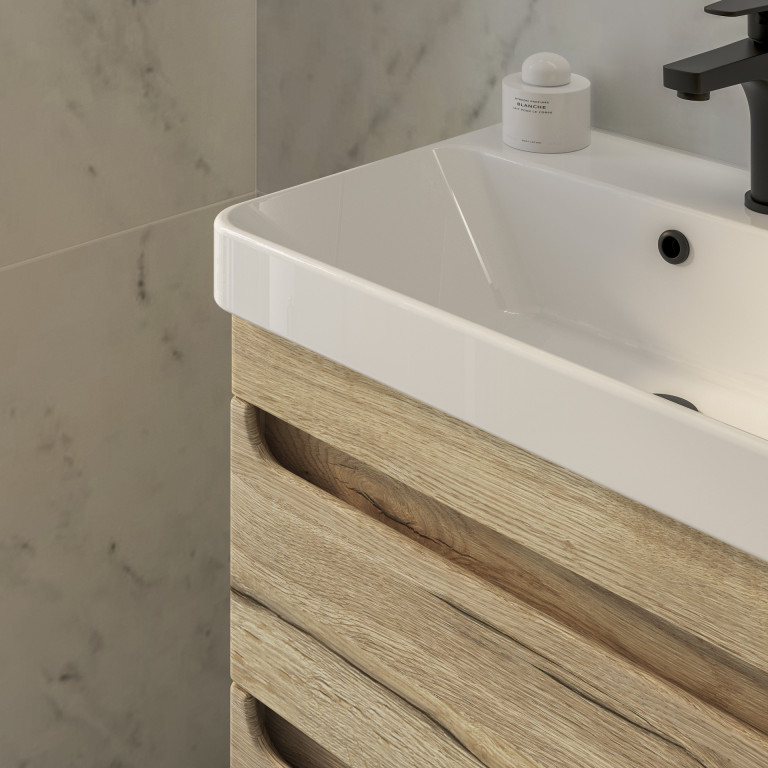 Bromont brings a contemporary feel to any bathroom with its rounded corners and integrated handles. Crafted with an emphasis on material quality, with an easy-to-clean ceramic basin, water-resistant matt finish and soft-close drawers. Bromont not only adds a touch of modern elegance to your bathroom but also prioritises functionality and quality.
