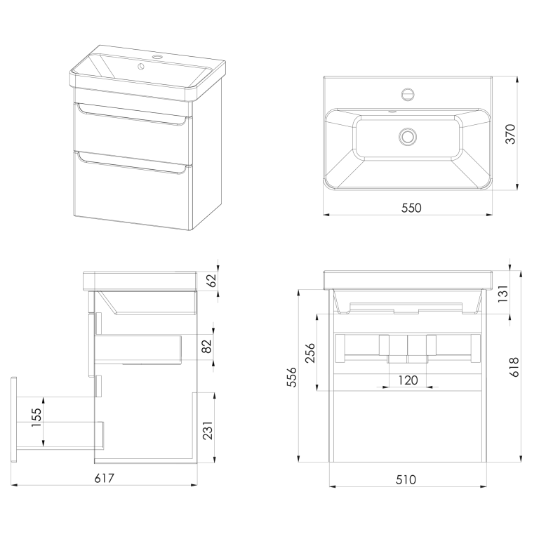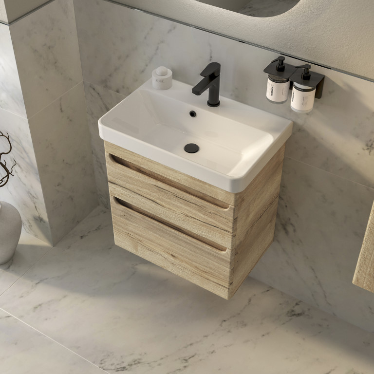 - Bromont 550mm two-drawer wall-hung vanity unit.