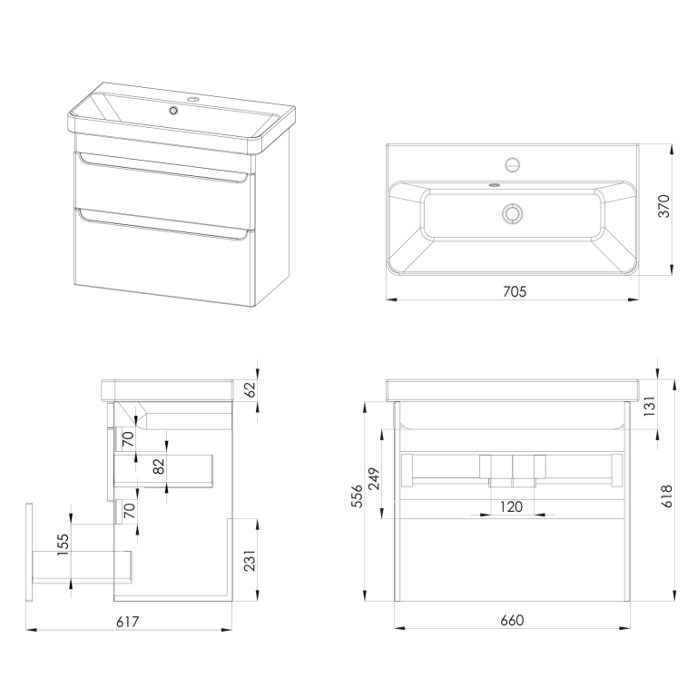 - Bromont 700mm two-drawer wall-hung vanity unit.