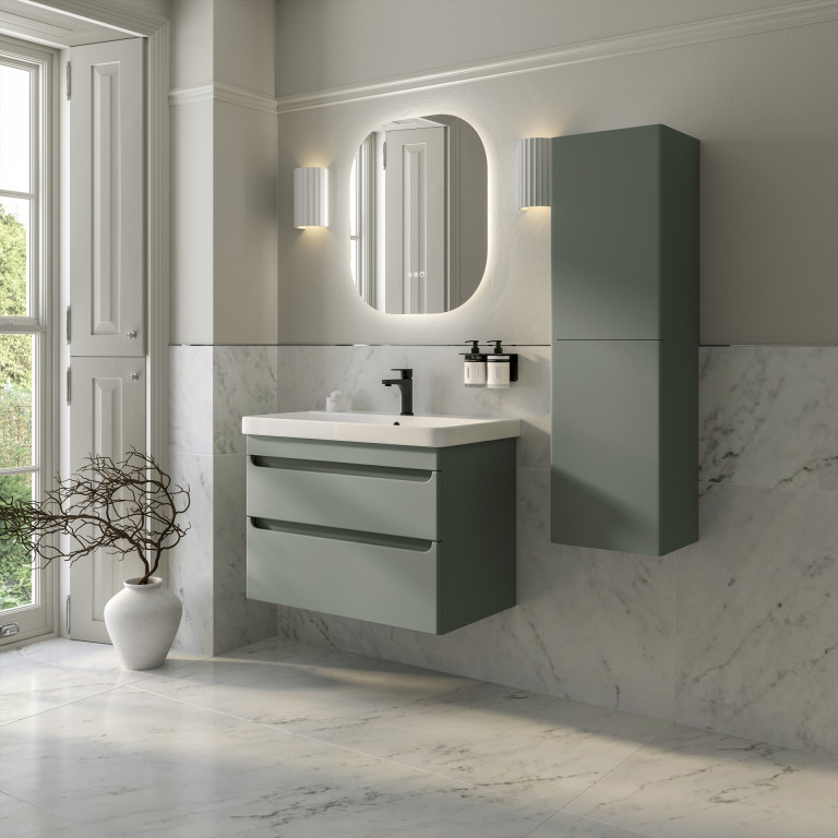 - Bromont 800mm two-drawer wall-hung vanity unit.
