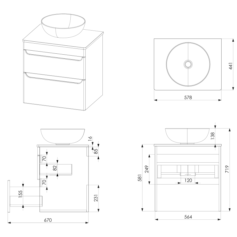 - Fully assembled vanity unit.