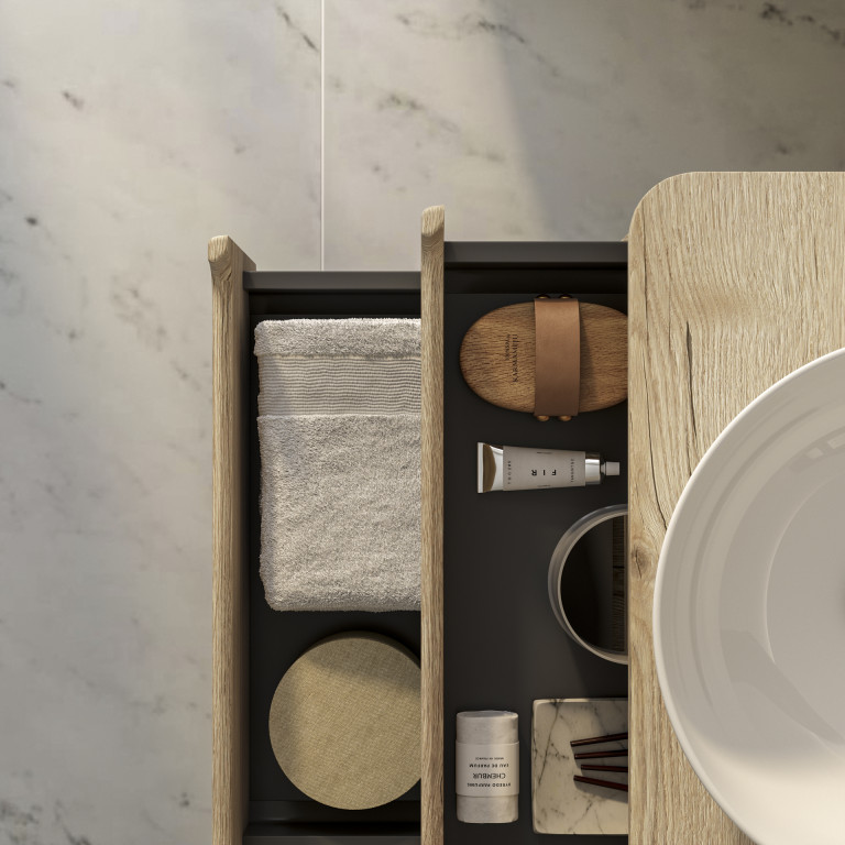 - Sorel sit-on basin with colour-matched worktop.