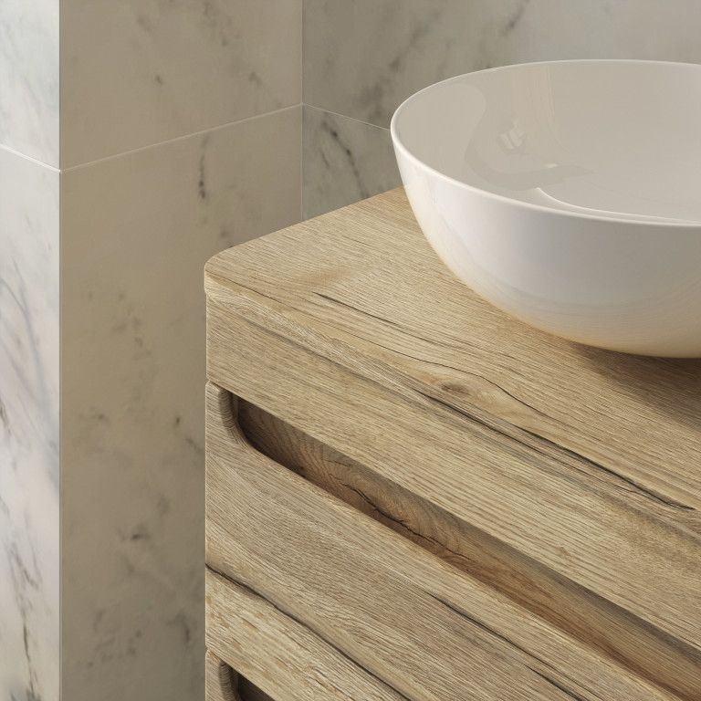 Bromont brings a contemporary feel to any bathroom with its rounded corners, integrated handles and colour-matched worktop. Crafted with an emphasis on material quality, with an easy-to-clean, ceramic bowl, water-resistant matt finish and soft-close drawers. Bromont not only adds a touch of modern elegance to your bathroom but also prioritises functionality and quality.
