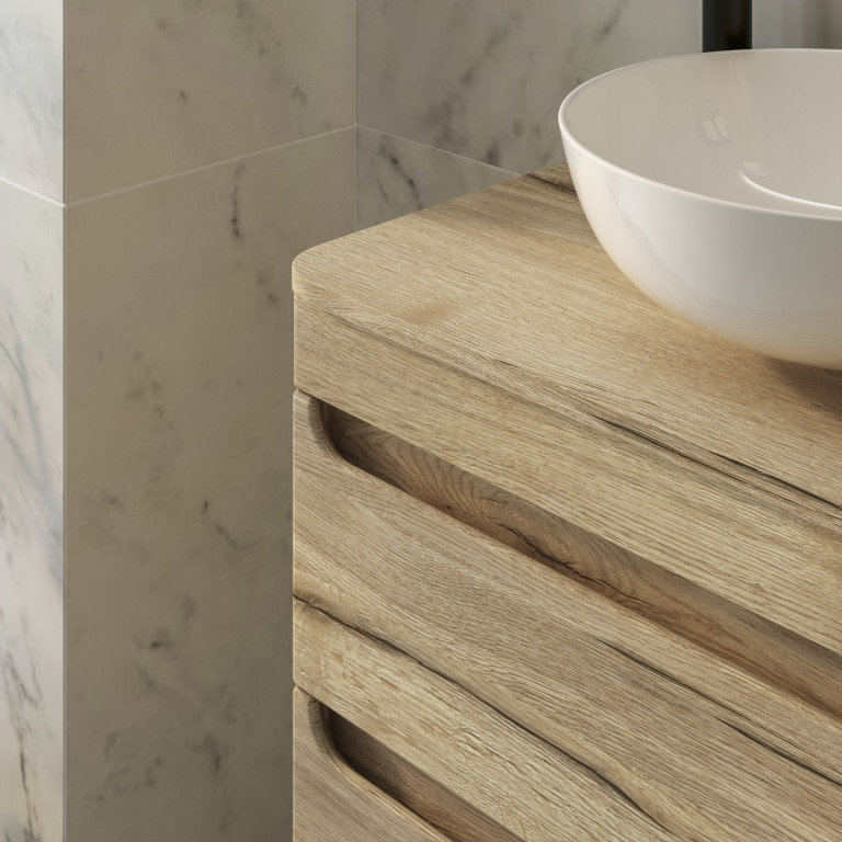 Bromont brings a contemporary feel to any bathroom with its rounded corners, integrated handles and colour-matched worktop. Crafted with an emphasis on material quality, with an easy-to-clean, ceramic bowl, water-resistant matt finish and soft-close drawers. Bromont not only adds a touch of modern elegance to your bathroom but also prioritises functionality and quality.