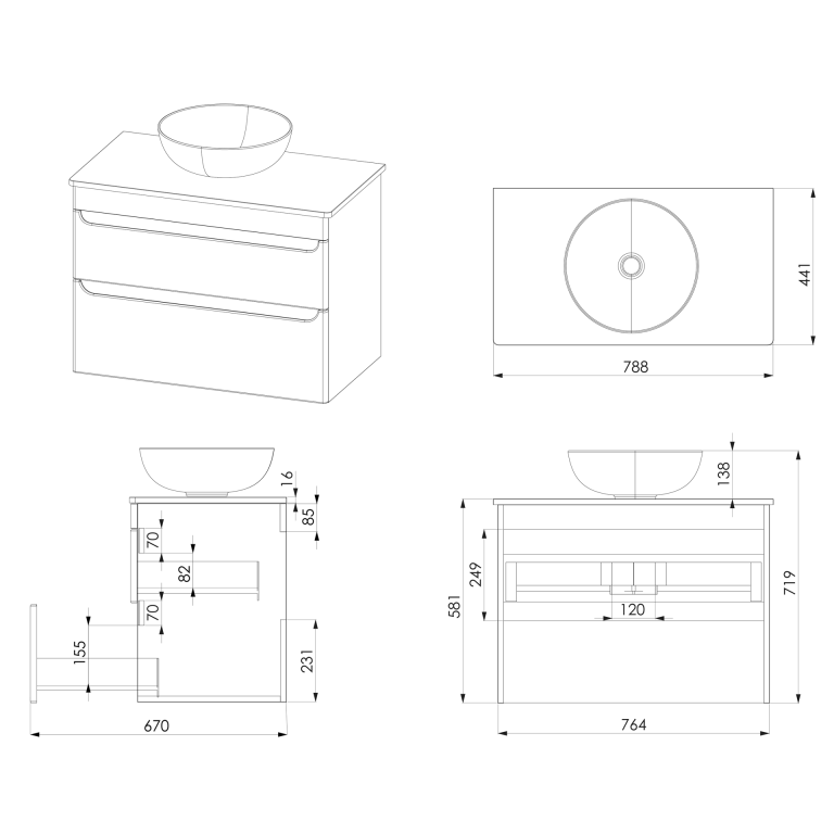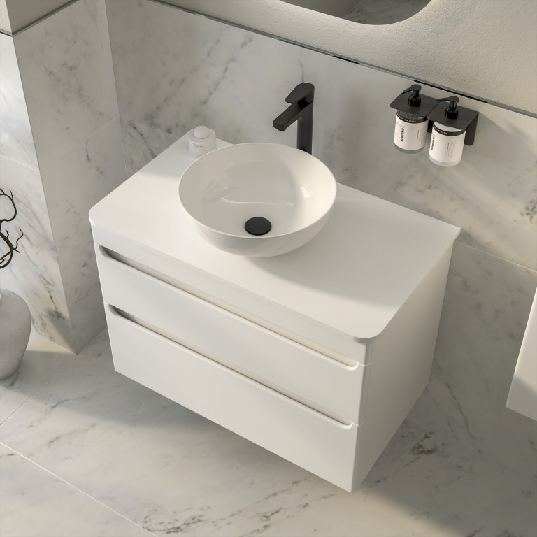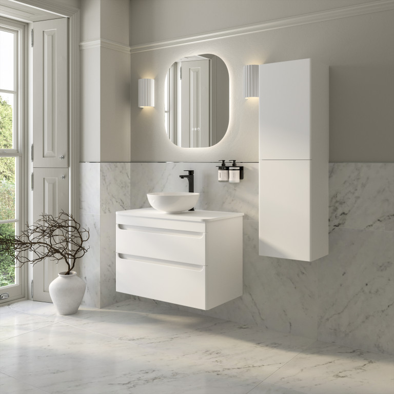 - Bromont 800mm two-drawer wall-hung vanity unit.