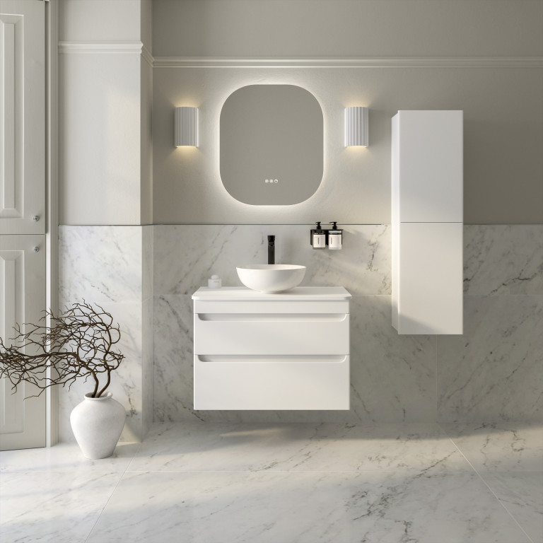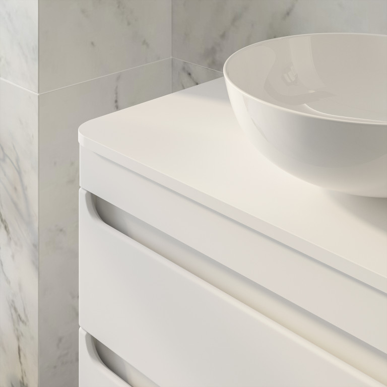 Bromont brings a contemporary feel to any bathroom with its rounded corners, integrated handles and colour-matched worktop. Crafted with an emphasis on material quality, with an easy-to-clean, ceramic bowl, water-resistant matt finish and soft-close drawers. Bromont not only adds a touch of modern elegance to your bathroom but also prioritises functionality and quality.