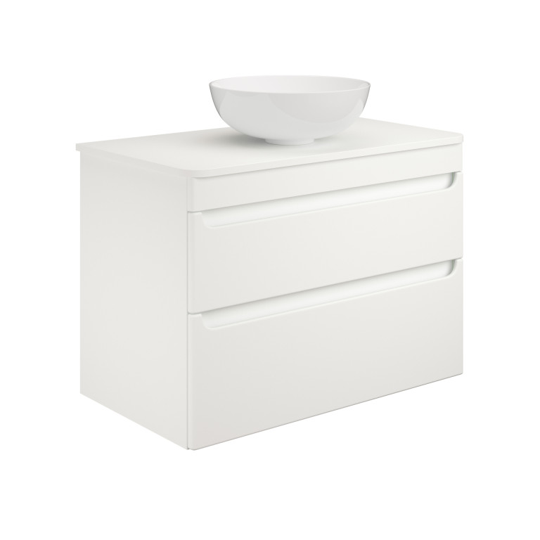 Bromont 2 Drawer Vanity 600mm with Worktop and Ceramic Sit-on Bowl - White Matt