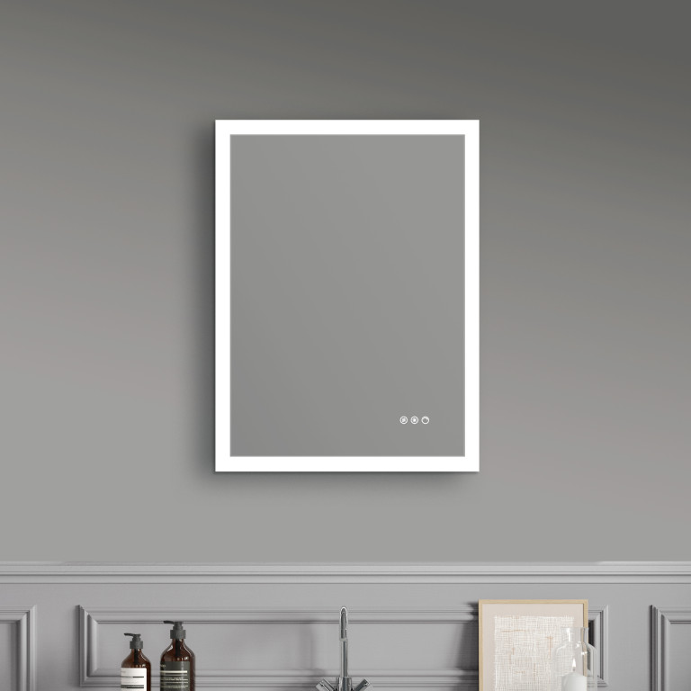Featuring an illuminated rim and a brushed aluminium case, the Hinton mirror adds a touch of sophistication to your bathroom. Whether you're gearing up for a productive day or unwinding with a relaxing evening bath, this mirror ensures perfect lighting to suit any mood, with touch-sensitive buttons, that enable effortless adjustments to both brightness and lighting temperature. Enjoy a crystal-clear reflection, thanks to its innovative, energy-efficient heated demister pad, ensuring a fog-free surface, even in the most humid bathroom environments.
