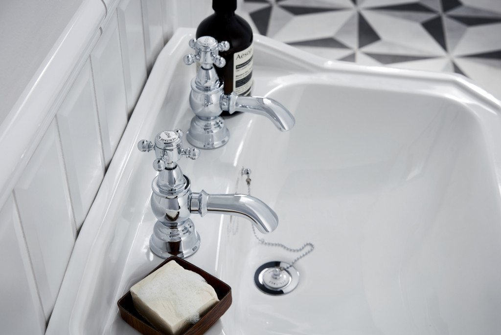 The best-selling design for brassware in a traditional bathroom. Crosshead design with in keeping indices in a choice of finishes.