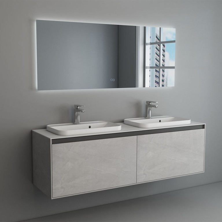 Ravine 900mm Single Drawer Cabinet with Open Storage in Natural Stone