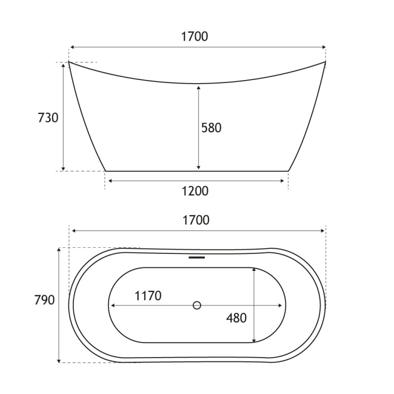 - Length: 1700mm, Width: 790mm, Internal depth: 445mm, Height: 730mm